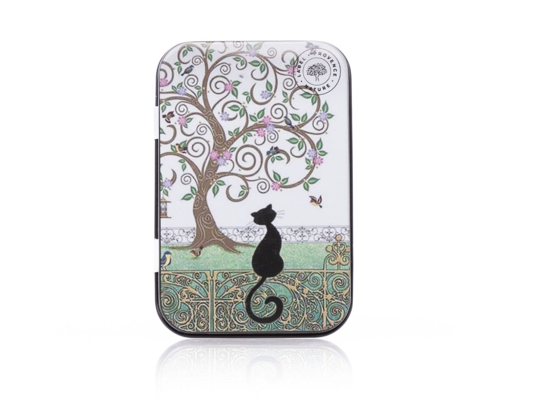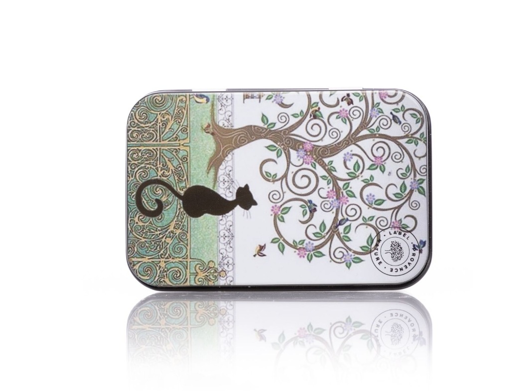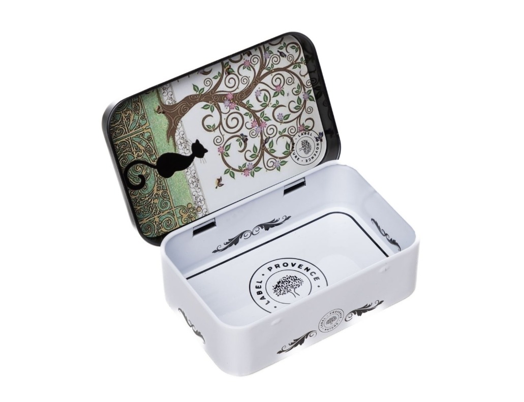 Ook zo gek op katten? Nou dan is dit het perfecte reis of opbergblikje voor de zeep. In dit blik past precies een stuk Franse zeep van 125 gram.