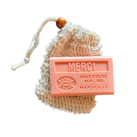 Merci zeep met duurzaam sisal scrubzakje - 125 gram zeep - verrijkt met biologische olijfolie
