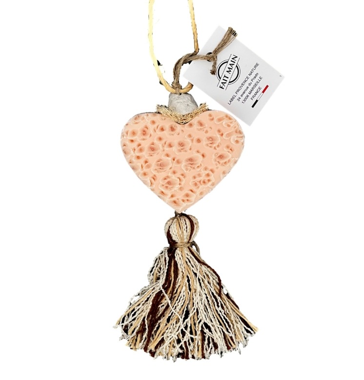 Geurende zeepvlecht met hartje in een beige kleur. Er zijn twee varianten, gehamerd of met patroon.