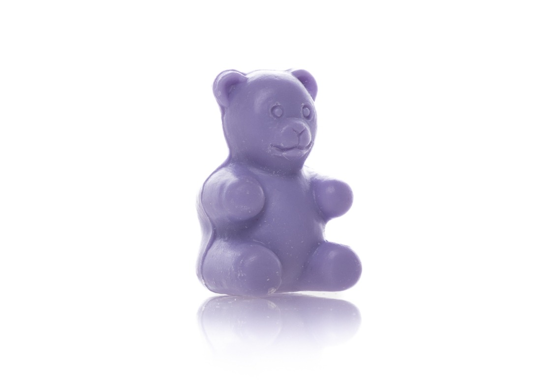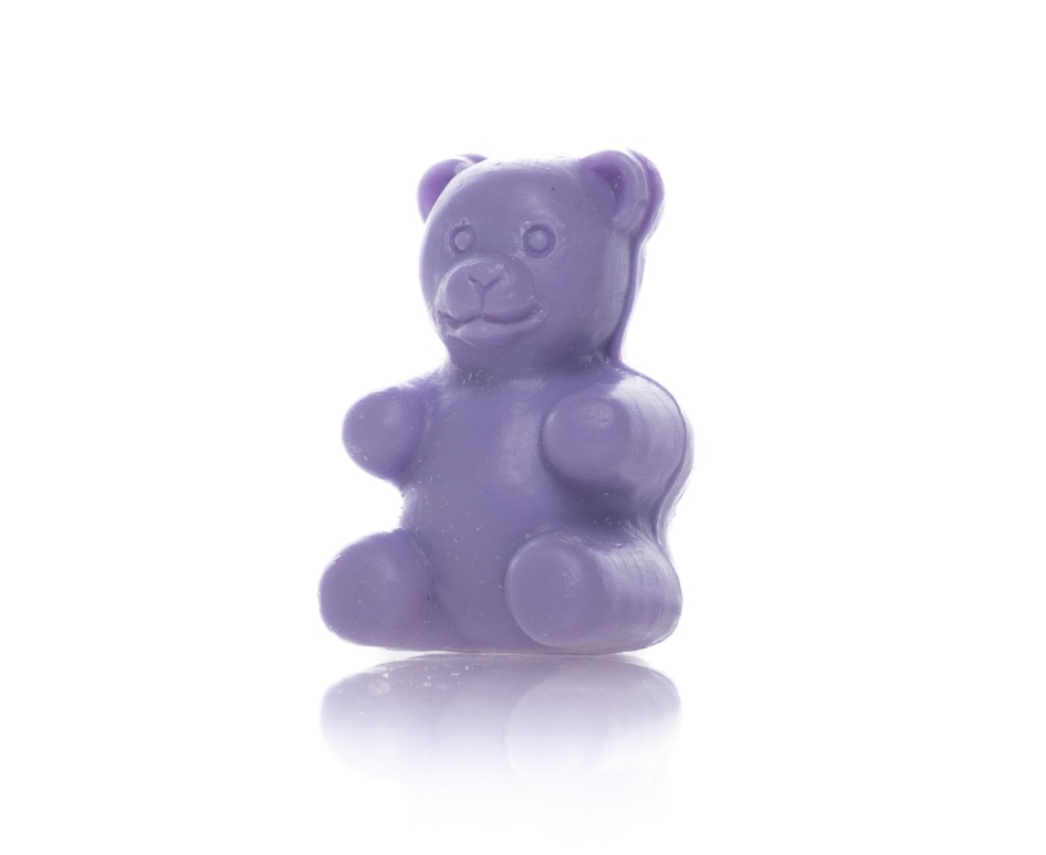 Schattig klein paars zeepje in de vorm van een beer, geurend naar lavendel. Dit gastenzeepje weegt 25 gram.