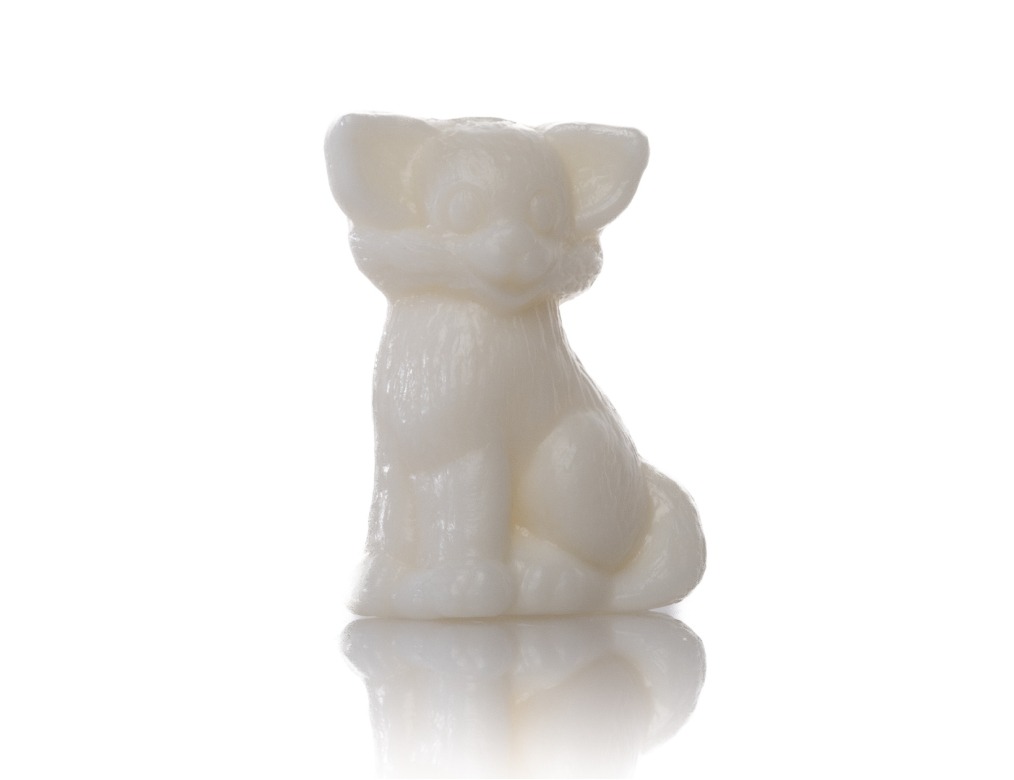 Een origineel gastenzeepje van 25 gram in de vorm van een Sphynx kat. De kleur van dit zeepje is wit en het is geurend naar zachte bloemen.